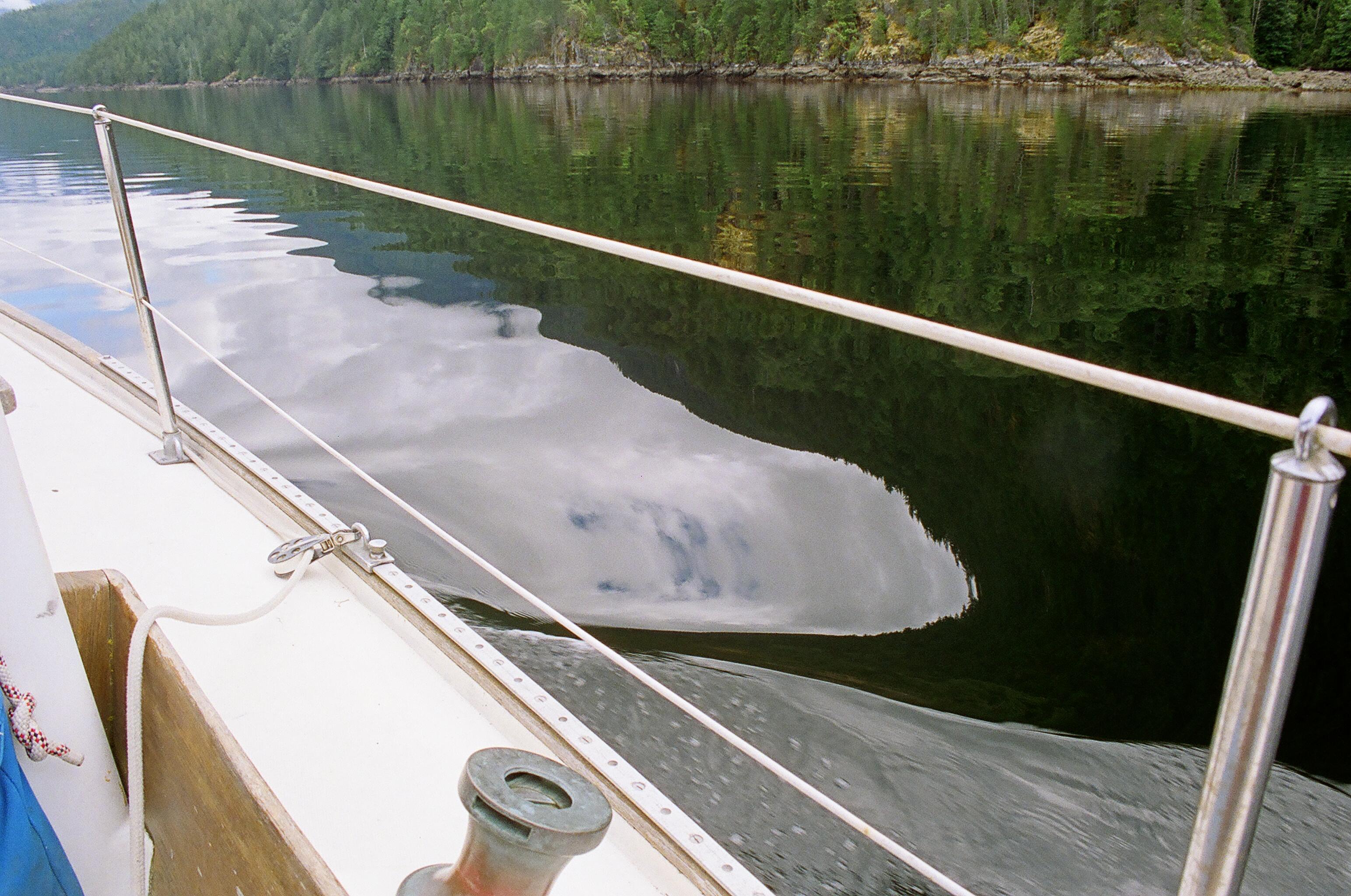 Look how the reflection of the top of the hill curves around!