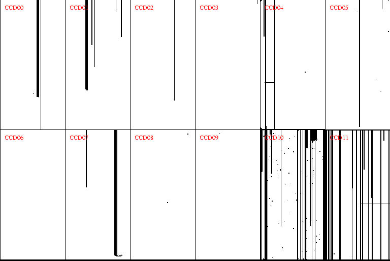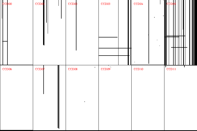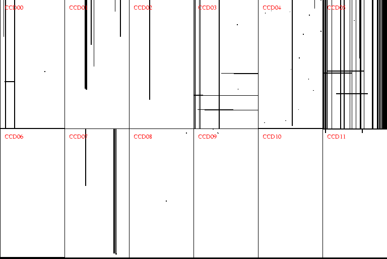 Smearing: Typically on CCD04 for the May 1999 run and on CCD00 for subsequent runs. Affects the photometry at less than the 1% level. Does not appear to affect the astrometry, but careful tests have not yet been done. The exact area seems to vary from exposure to exposure. |